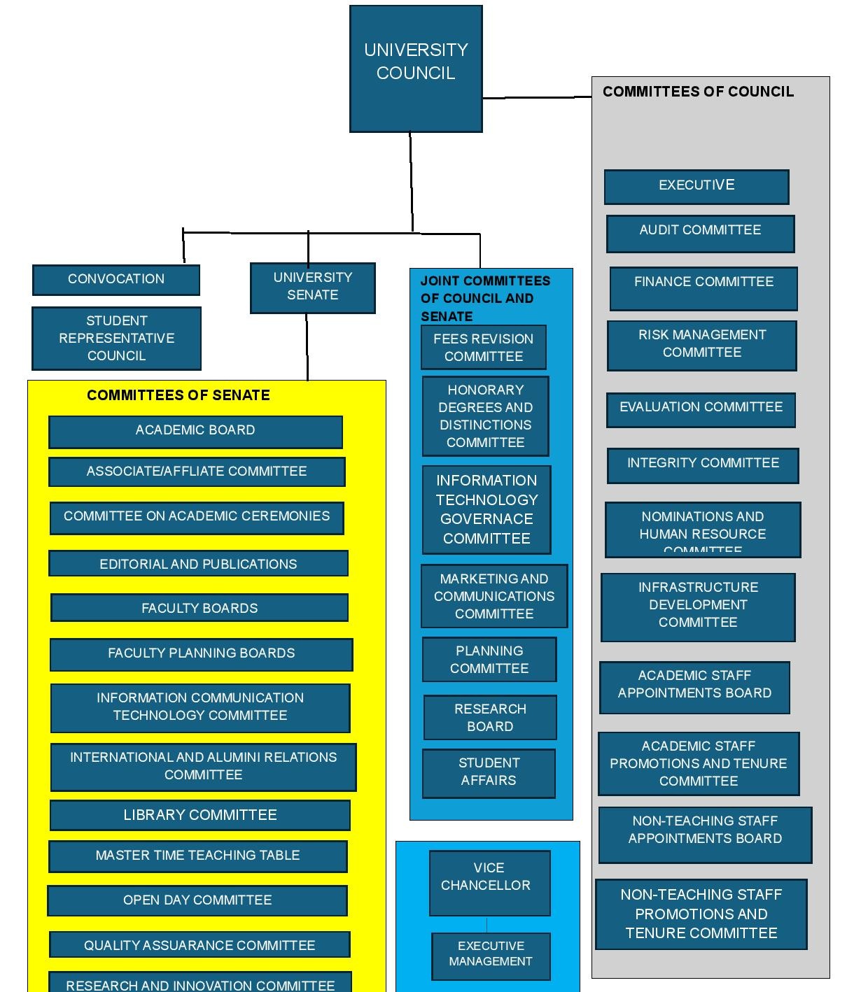 The Committee System constitutes the governance structure of the University. The key components of the governance structure are: